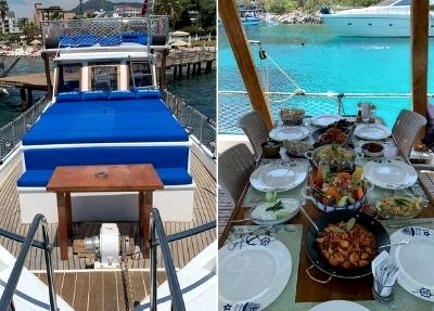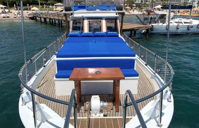 Özel Teknemiz sabah 10:00’da Marmaris Merkezden kalkmaktadır. Öğleden sonra saat 17:00’da limana geri dönmektedir. Öğle yemeği tur ücretine dahildir. Teknemiz 5 farklı koyda yüzme molası verilmektedir. Tekne kapasitemiz 10 kişidir. Teknemizde 1 kaptan ve yardımcısı olacaktır. Detaylı bilgi için bizleri 0252 345 06 94 numaralı telefondan arayabilirsiniz.